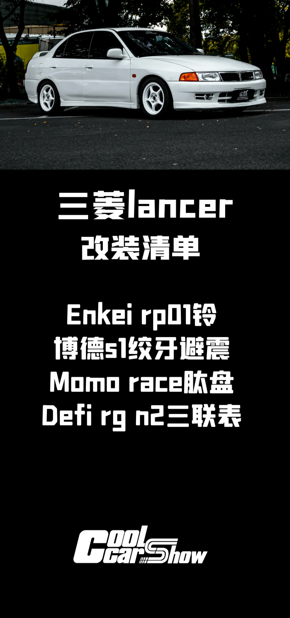“我这台是三菱Lancer,代号ck4a,排量为1.6L自然吸气,在此之前我玩过凌志is200,东南菱帅,9代思域以及大众高尔夫。”