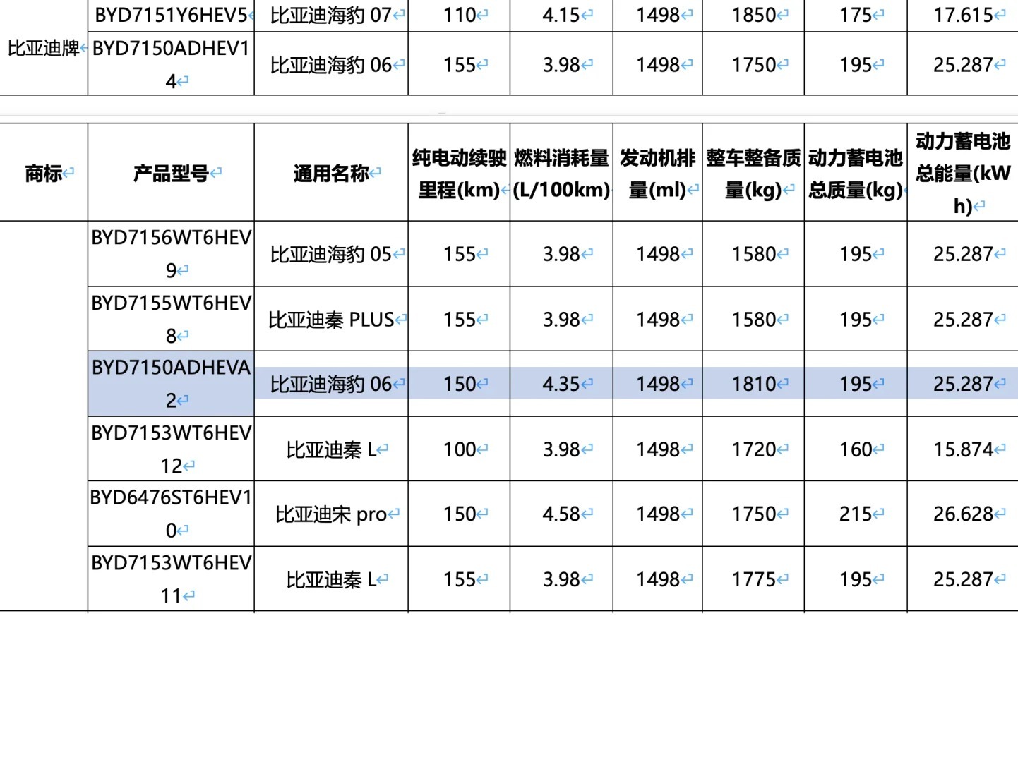 海洋网的海豹05、海豹06、海豹06旅行版,也均搭载同款电池组,其中,稍重的海豹06旅行版,WLTC为150km。