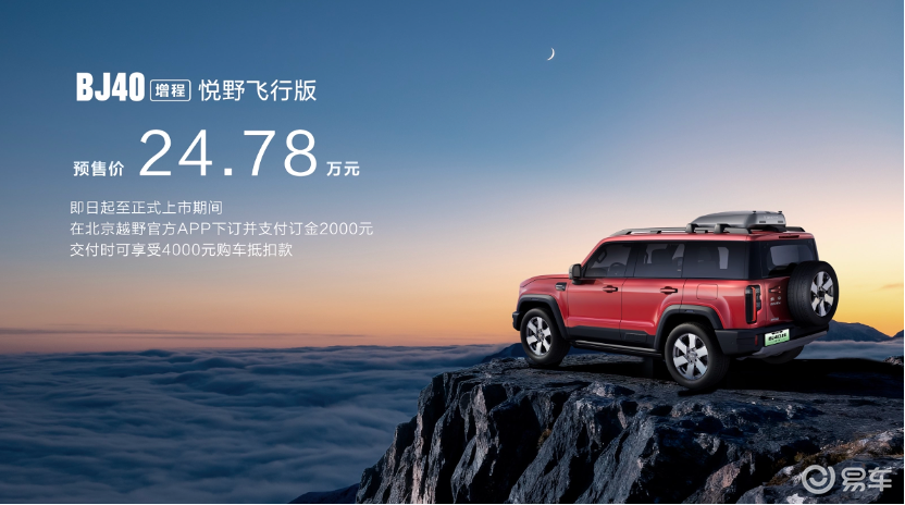 BJ40增程悦野飞行版预售价24.78万,预售下订2000元,交付抵4000元。