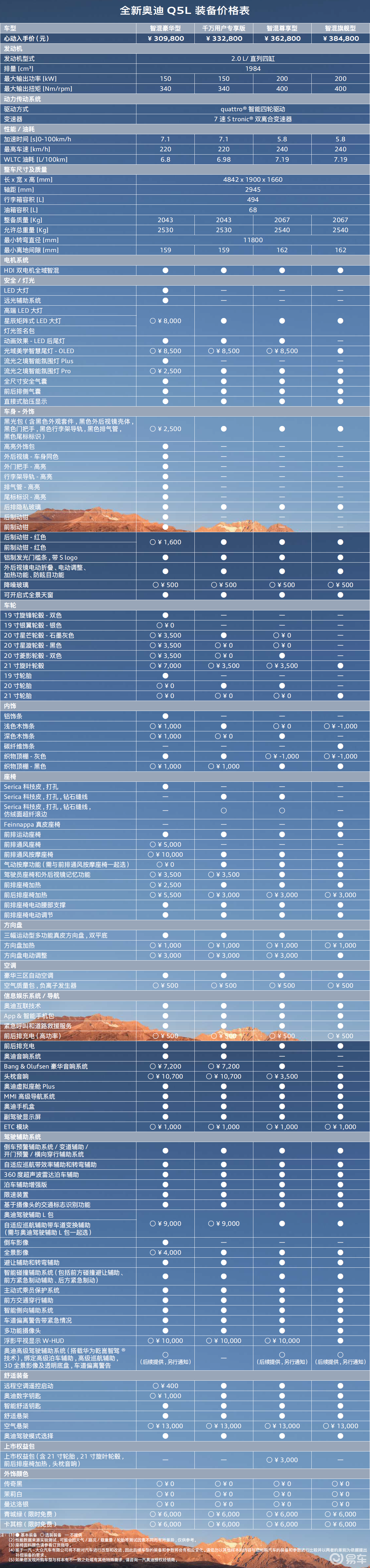 附:2026款一汽奥迪Q5L官方配置表(点击下图可放大观看):