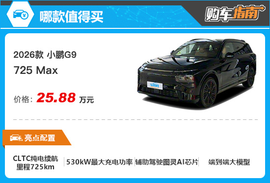 推荐725Max 2026款小鹏G9购车指南