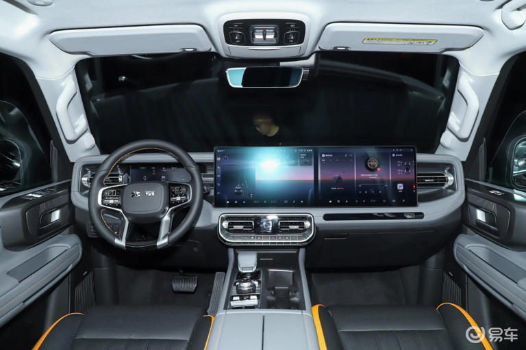 内饰均延续科技与硬朗兼具的风格,核心差异聚焦功能配置。座舱标配10.25英寸全液晶仪表与双12.8英寸中控、副驾双联屏,搭载高通骁龙8155芯片,保障操作流畅度。悦野飞行版车机系统会集成无人机相关功能操作界面,支持语音控制无人机启停、跟拍及影像回传,画面可实时共享给车队,助力路况侦测与营地选址,全程无需手动干预即可完成收纳与充电。赤兔版内饰保持基础布局,通过实体按键与电子换挡杆强化操控便利性,细节处融入越野元素装饰,与外观风格形成呼应。