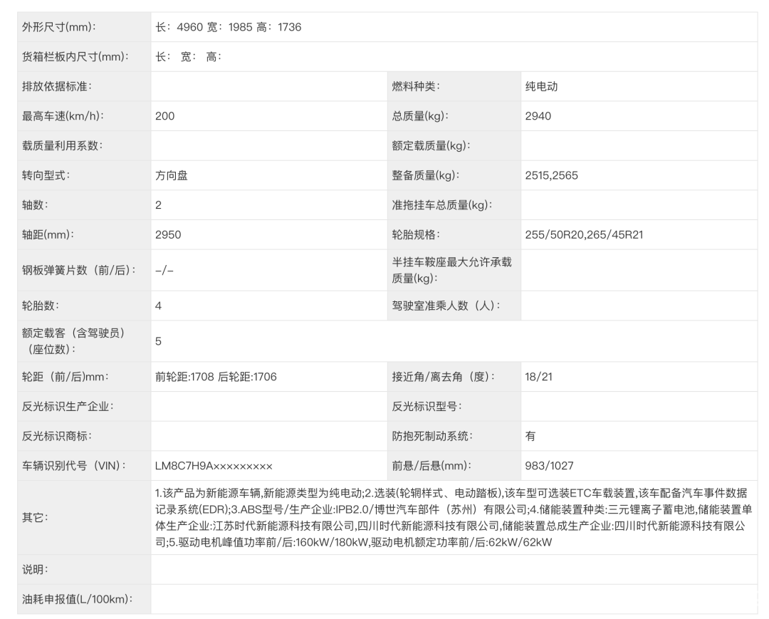 提供增程、纯电双版本,增程版搭 1.5T 增程器 + 前后双电机(165kW+180kW),配37/53kWh电池,供应商均是宁德时代,WLTC纯电续航里程在180-272公里,亏电油耗为5.9-6.1L/百公里;