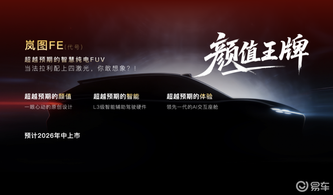 这种规律始于2025的爆款车型小米YU7,一改2025年以前“以大为主”的核心规律。2026年将是风格之争年,此外启境品牌的首款车型,以及岚图官宣的代号为“FE”的全新FUV,也将符合这一规律。