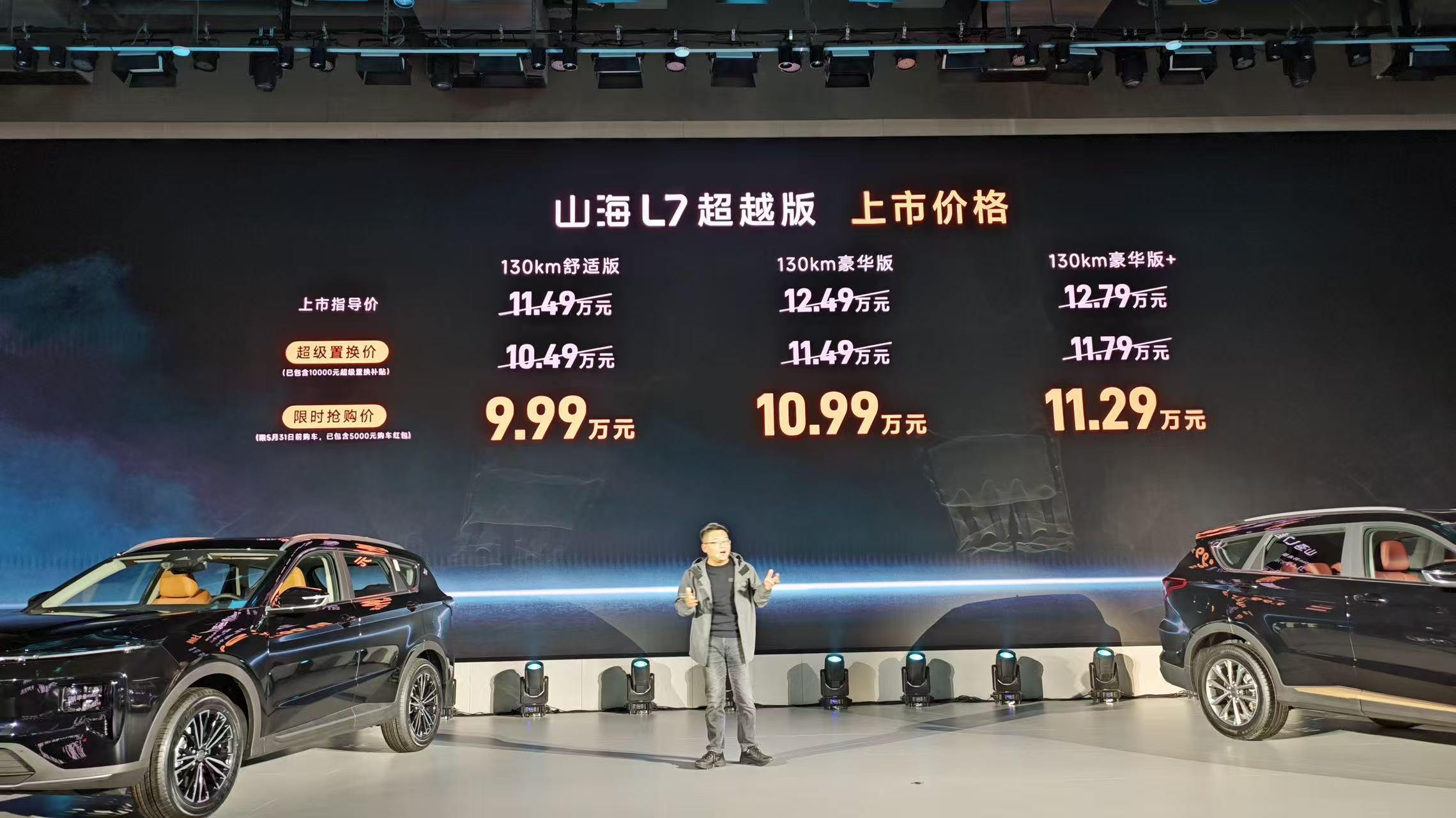 售价直接击穿市场预期:X70超越版限时抢购价6.99万起(官方指导价9.99万起),山海L7超越版限时9.99万起(官方指导价11.49万起)。
