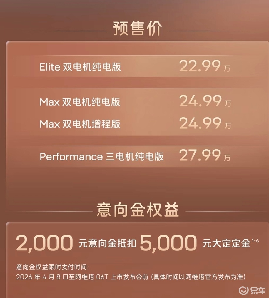 一夜之间,三款新车公布了价格,阿维塔06T预售降三千