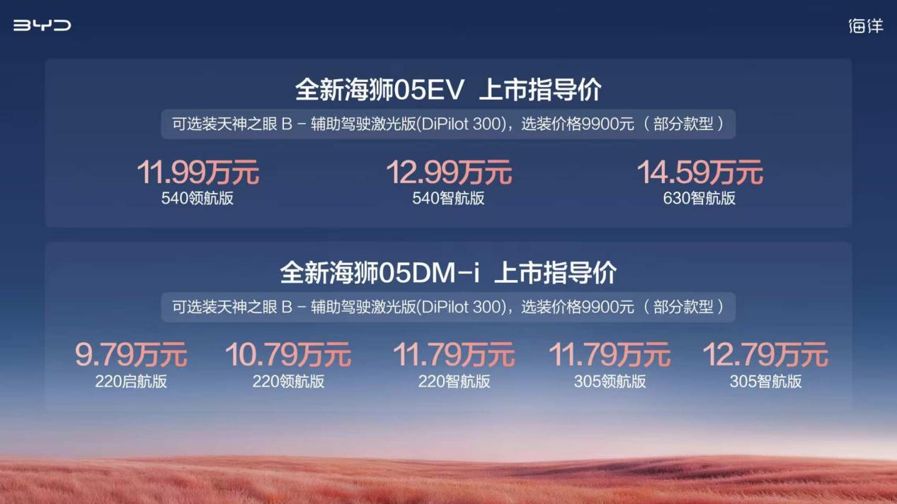 最后售价,全新海狮05EV的官方指导价为11.99万元-14.59万元,全新海狮05DM-i的官方指导价为9.79万元-12.79万元,作为一台A级SUV,它的竞争力真的没得说。#都市智趣SUV#