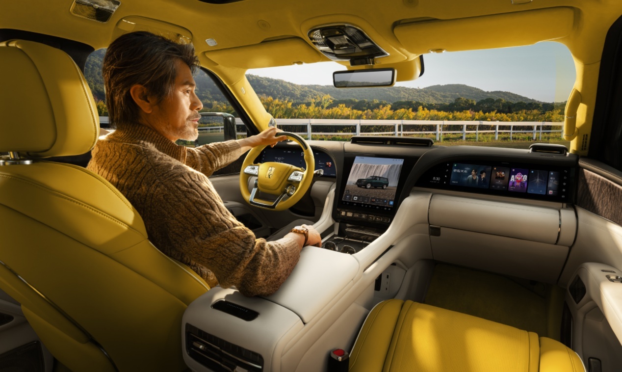 内饰采用全新配色鸣沙金,灵感来自日出时敦煌鸣沙山和月牙泉。 座椅表面带特制山纹刺绣,仪表台为飞流瀑布曲面屏。